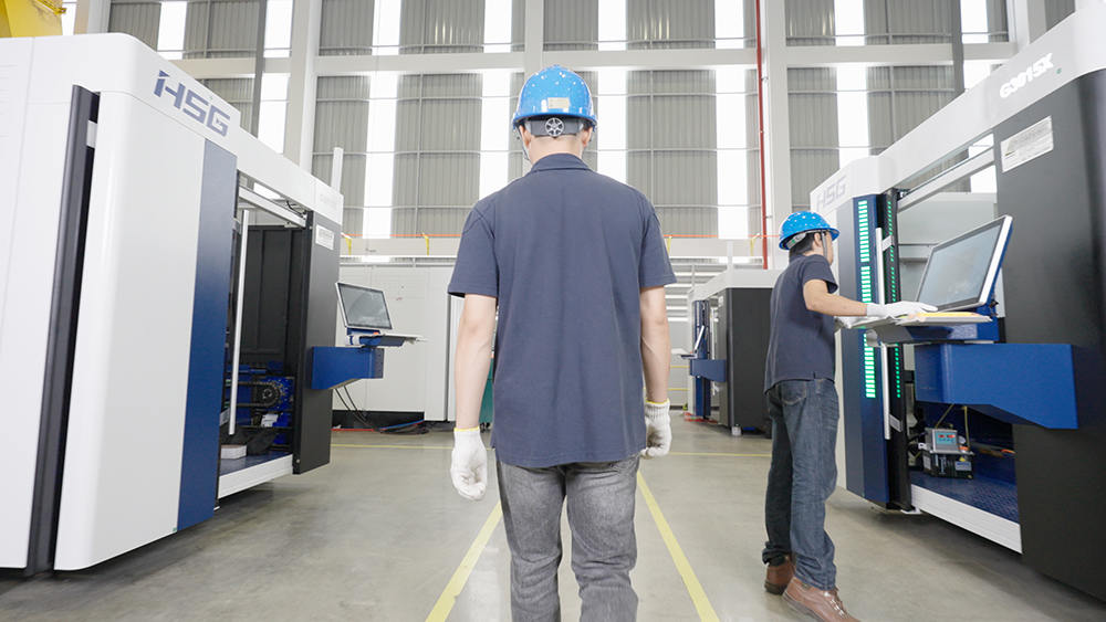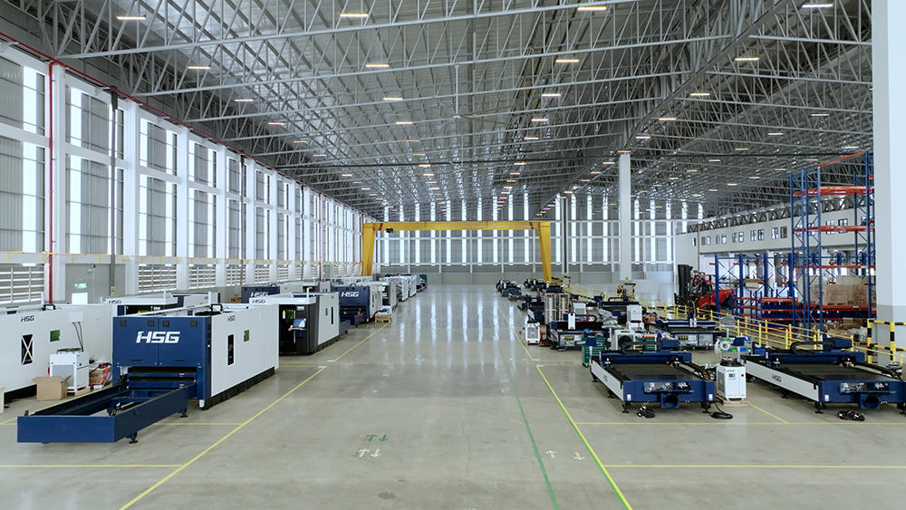 生產(chǎn)區(qū)布局40個(gè)生產(chǎn)工位,滿足40臺(tái)高端切割機(jī)同時(shí)生產(chǎn),工廠年產(chǎn)能2000臺(tái)激光加工智能裝備,目前主要生產(chǎn)宏山高端板材切割機(jī),如C系列單平臺(tái)激光切割機(jī),GX系列雙平臺(tái)激光切割機(jī)和GH系列高功率激光切割機(jī),未來將不斷結(jié)合全球市場(chǎng)需求,研發(fā)制造更多機(jī)型。