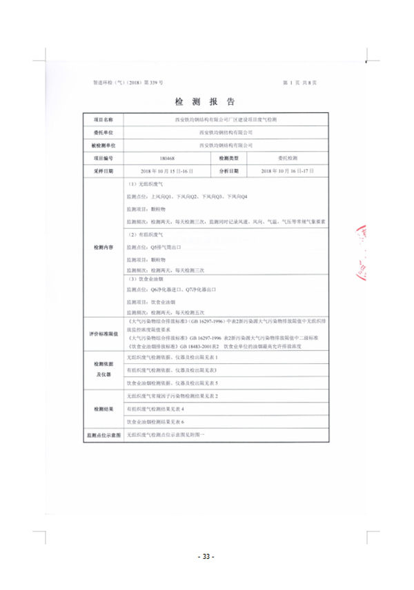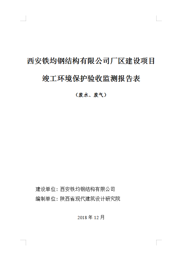 西安鐵均鋼構(gòu)廠區(qū)建設(shè)-驗(yàn)收監(jiān)測(cè)報(bào)告(廢水、廢氣)